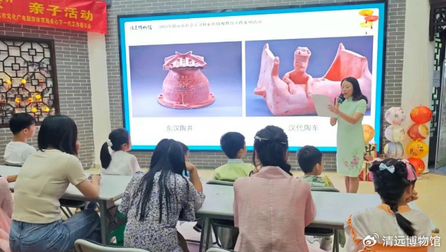 在动手制作之前,一场深度文物讲解课缓缓拉开序幕。主持人化身为知识的引路人,带领亲子家庭深入解读陶屋的岭南建筑特色。从陶屋的干栏式结构到通风防潮的精妙设计,从陶仓的储粮构造到丰收的象征意义,再到陶井的取水原理和陶灶背后的家庭烟火气息,每一个细节都透露出汉代人民的智慧与创造力。